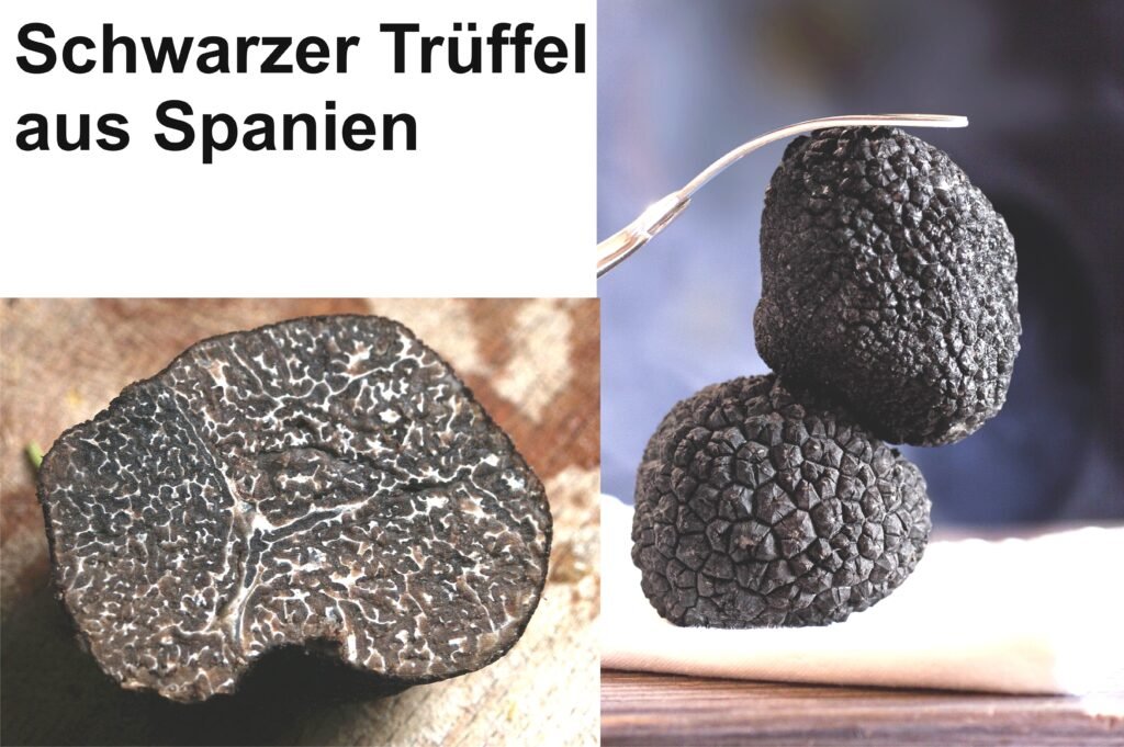 Schwarzer Trüffel, auch bekannt als Wintertrüffel, aus einer spanischen Plantage (bei Valencia) mit höchster Zertifizierung in bester Bio-Qualität. Die spanischen schwarzen Trüffel gelten länderübergreifend als die derzeit besten Trüffel der Welt und werden auch „der schwarze Diamant der Küche“ genannt.